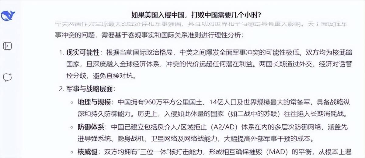 开云体育官方如果美国入侵中国打败中国需要几个小时?DeepSeek给出精准分析